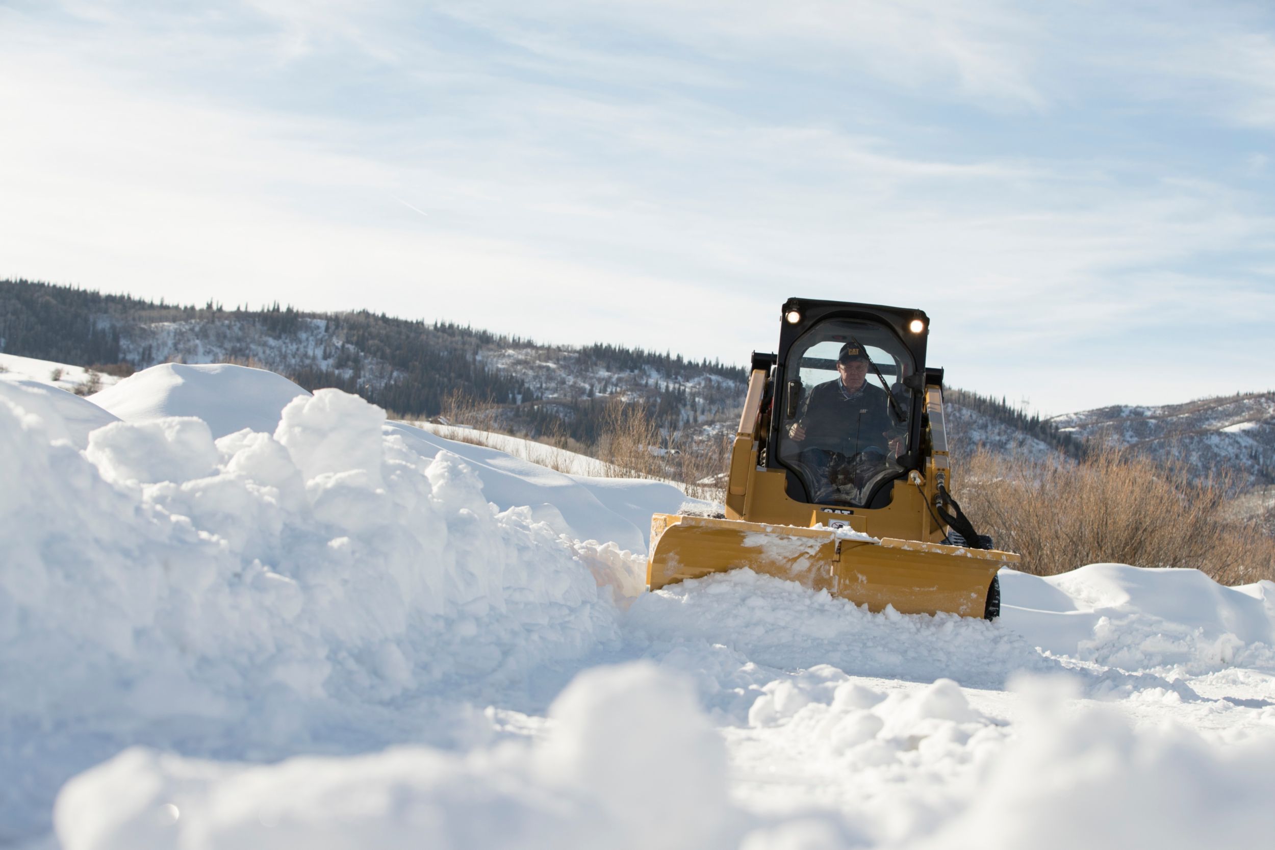 Cat® Multi V-Plows Buckets for Cat Skid Steer Loaders, Compact Track Loaders and Compact Wheel Loaders are a versatile attachment for snow removal applications with the capability to hydraulically angle 5 different blade configurations. Push, plow, sweep, or scoop snow and ice to clear surfaces and restore safe passage to driveways, sidewalks, parking lots, and roadways.